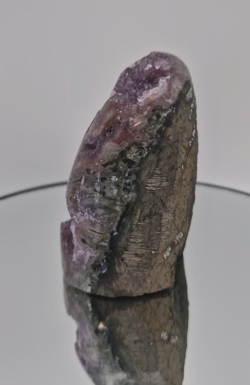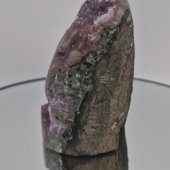 Dem pinken Amethyst wird traditionell eine besonders sanfte, herzöffnende Schwingung zugeschrieben. Sein Stalaktit-Aufbau verstärkt diese Wirkung – ein Symbol für Harmonie, Schutz und Ganzheit.