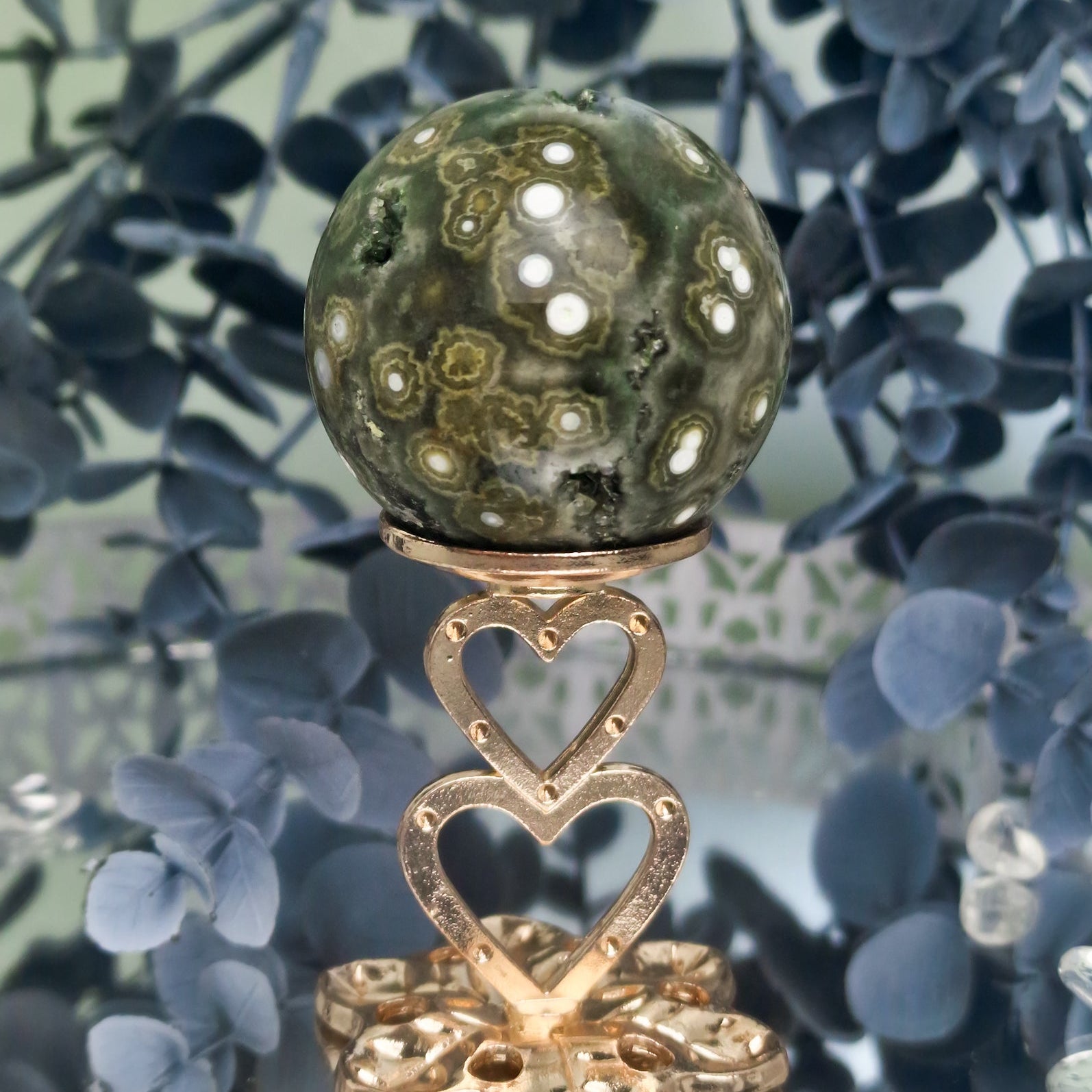 Ocean Jaspis gilt als Stein der Freude, Heilung und Erdung. Er soll dabei helfen, Stress abzubauen, emotionale Balance zu finden und das Herz für Positivität zu öffnen. Seine Muster erinnern an Wellen und Kreise – Symbole für die ständige Bewegung des Lebens und die Verbundenheit mit der Natur. In Kugelform verstärkt er das Gefühl von Ganzheit, Harmonie und zyklischer Erneuerung.