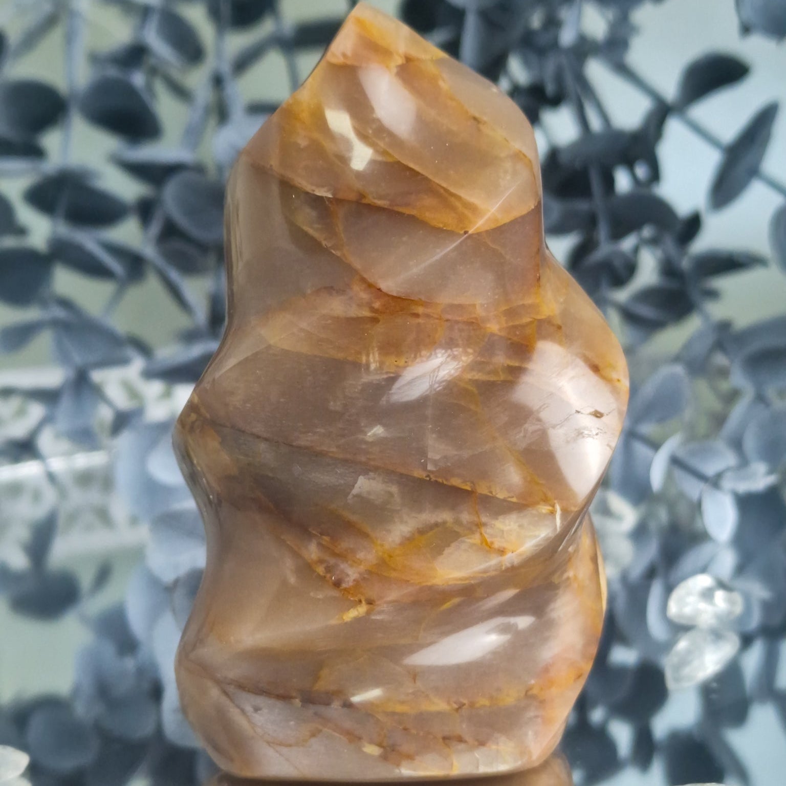 Der Pfirsich Mondstein gilt als Stein der emotionalen Heilung, Intuition und Sanftmut. Er unterstützt dabei, Herzöffnungen zu fördern, Ängste loszulassen und sanft Veränderungen zuzulassen. In Flammenform verstärkt er das Gefühl von Aufstieg, innerer Kraft und positiver Transformation – ideal für alle, die emotionale Balance, Lebensfreude und kreative Inspiration in ihr Leben bringen möchten.