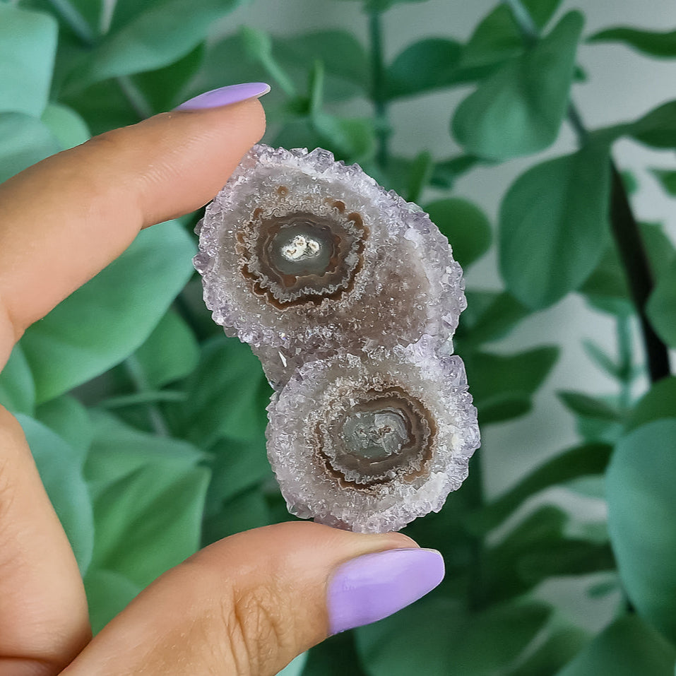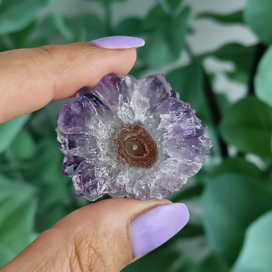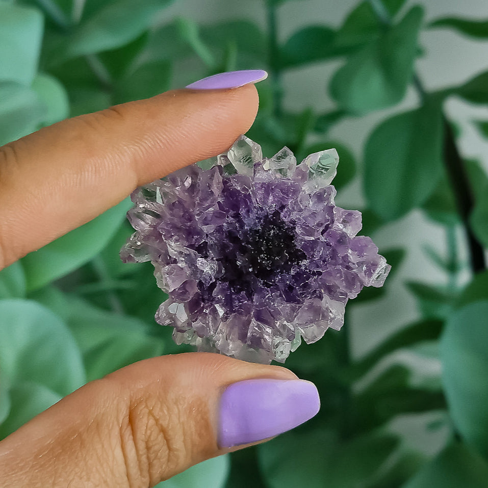 Diese faszinierenden Amethyst-Stalaktiten aus Uruguay sind echte Naturwunder: Über Jahrtausende in dunklen Höhlen gewachsen, zeigen sie eine einzigartige, blütenartige Struktur – fast wie kleine Mineralien-Blüten, von der Natur selbst geformt.